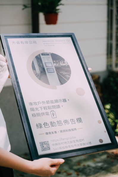 曾在外商ICT產業深耕多年的黃若嘉,深知全球暖化對環境與人類未來的威脅。面對能源壓力與碳排挑戰,她開始思索:「科技除了商業應用,是否也能成為解決環境問題的推手?」2022年8月,她與志同道合的夥伴共同創辦「方睿有限公司」,專注於綠色節能顯示技術的開發,盼能讓科技真正走入生活、扎根地方。「若職場累積的專業最終只換得有形報酬,實在太可惜。我想把這些經驗轉化成對社會與環境有貢獻的價值,讓每一次創新都能為生活減碳、為地方添光。」黃若嘉語氣堅定,眼中充滿願景地說。