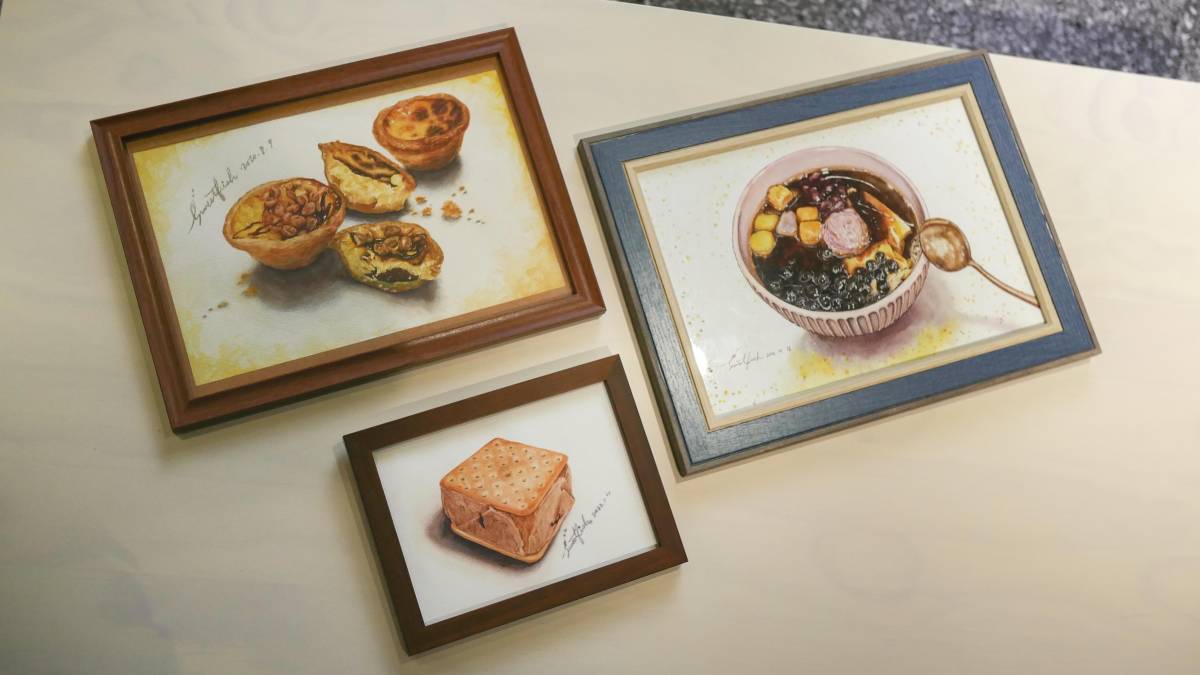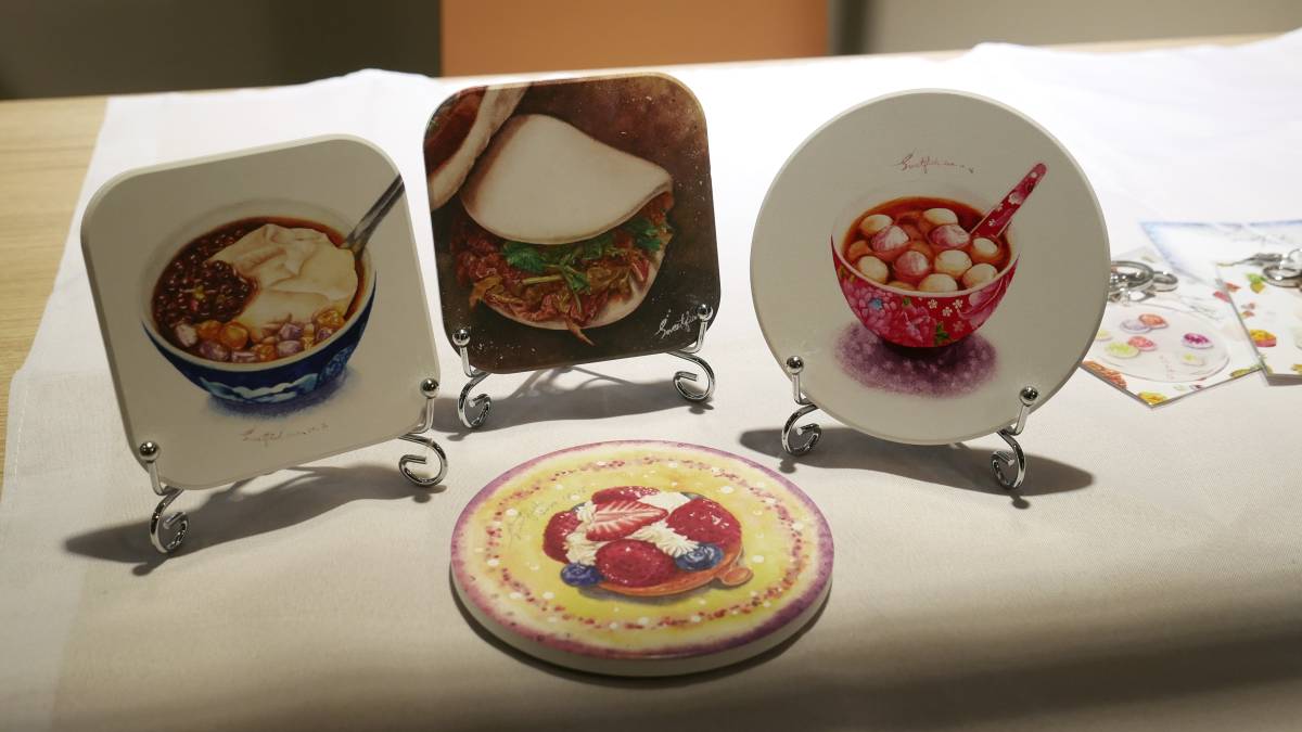 「如果不畫畫,我不知道人生還有什麼意義。」陳湘羽語氣輕柔,語意卻堅定。她的創作空間裡擺滿各式各樣的食物藝術畫作,控肉飯、甜湯圓、割包、草莓大福、菠蘿麵包等熟悉滋味,在畫布上栩栩如生地展開,彷彿一場迷你滿漢全席。