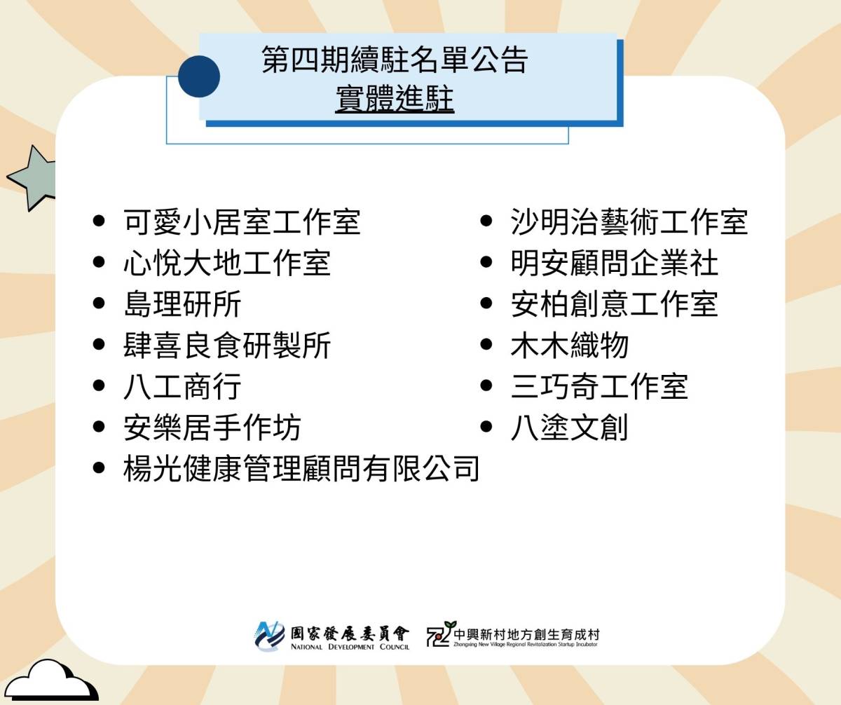 【第四期團隊續駐名單公告💡】