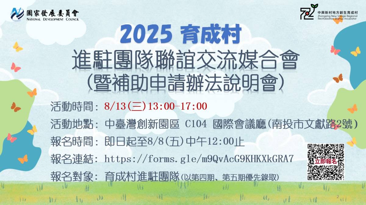 📢【114年育成村大會師-進駐團隊聯誼交流媒合會 × 補助申請辦法說明會】