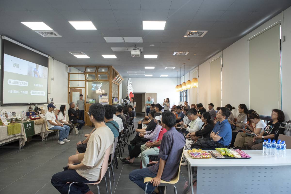 育成村成果展是一個展現創新能量與創業交流的盛會,進駐團隊在這裡進行市場測試、分享理念,激盪靈感。除了在戶外攤位推廣自家品牌,進駐團隊也於育成村服務中心透過展品與故事,向遊客傳遞他們在地方實踐創生的歷程。