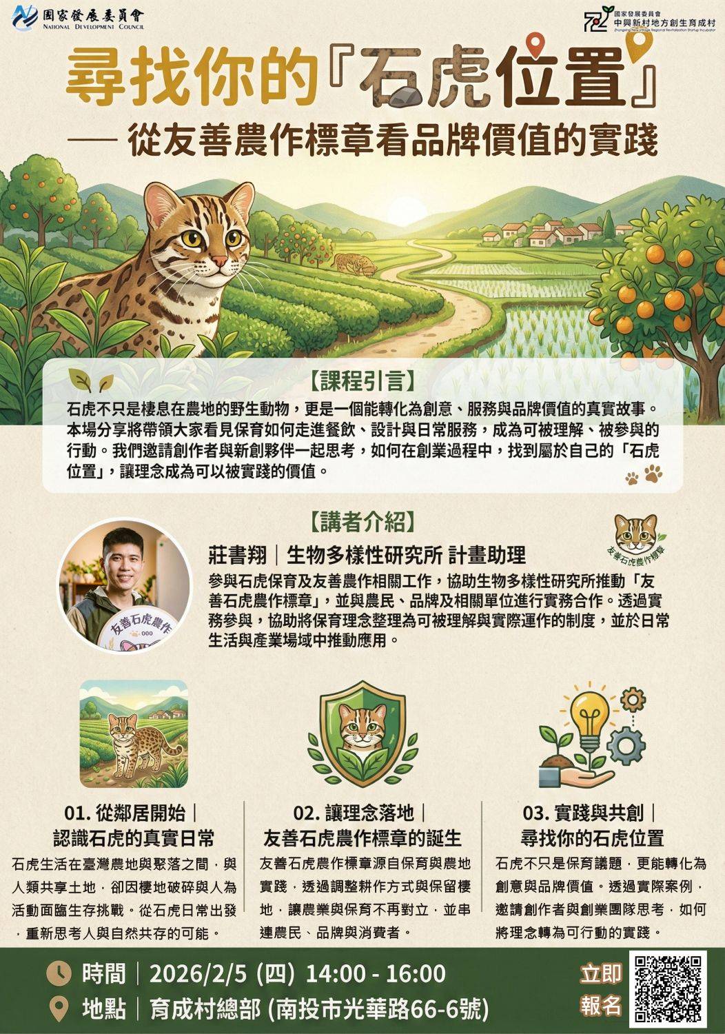 【育成村115年2月份課程】跟著「石虎」找到不可取代的市場位