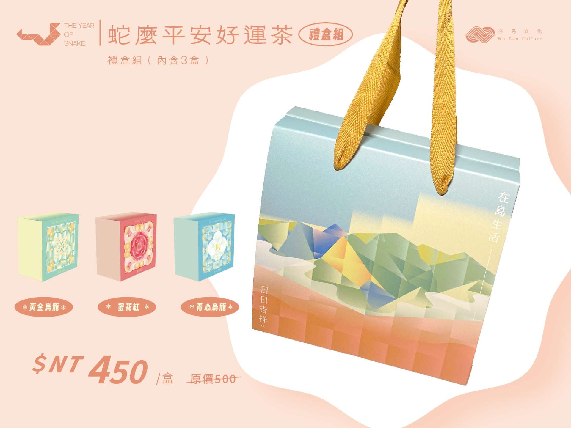 嚴選3款名間職人茶品 結合在地信仰 給您最吉祥平安的茶禮盒 送禮自用兩相宜。內含清心烏龍50g一盒、黃金烏龍50g一盒、蜜花紅15g一盒,三種風味三種好運跟著來。